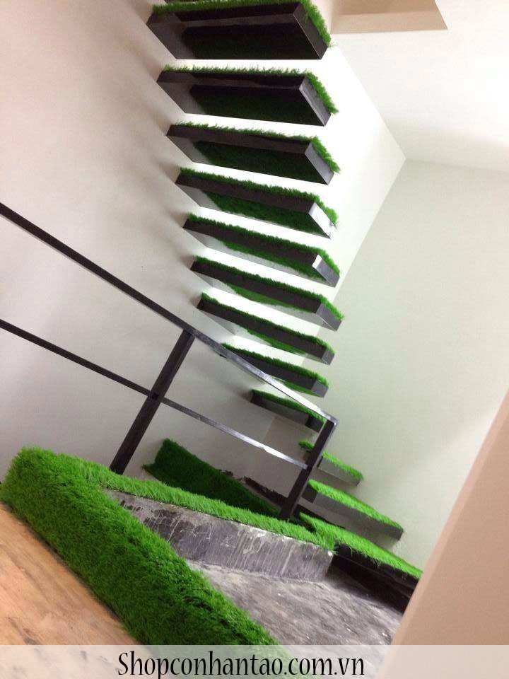 Cỏ nhân tạo lót cần thang, êm chân xanh mát trong nhà