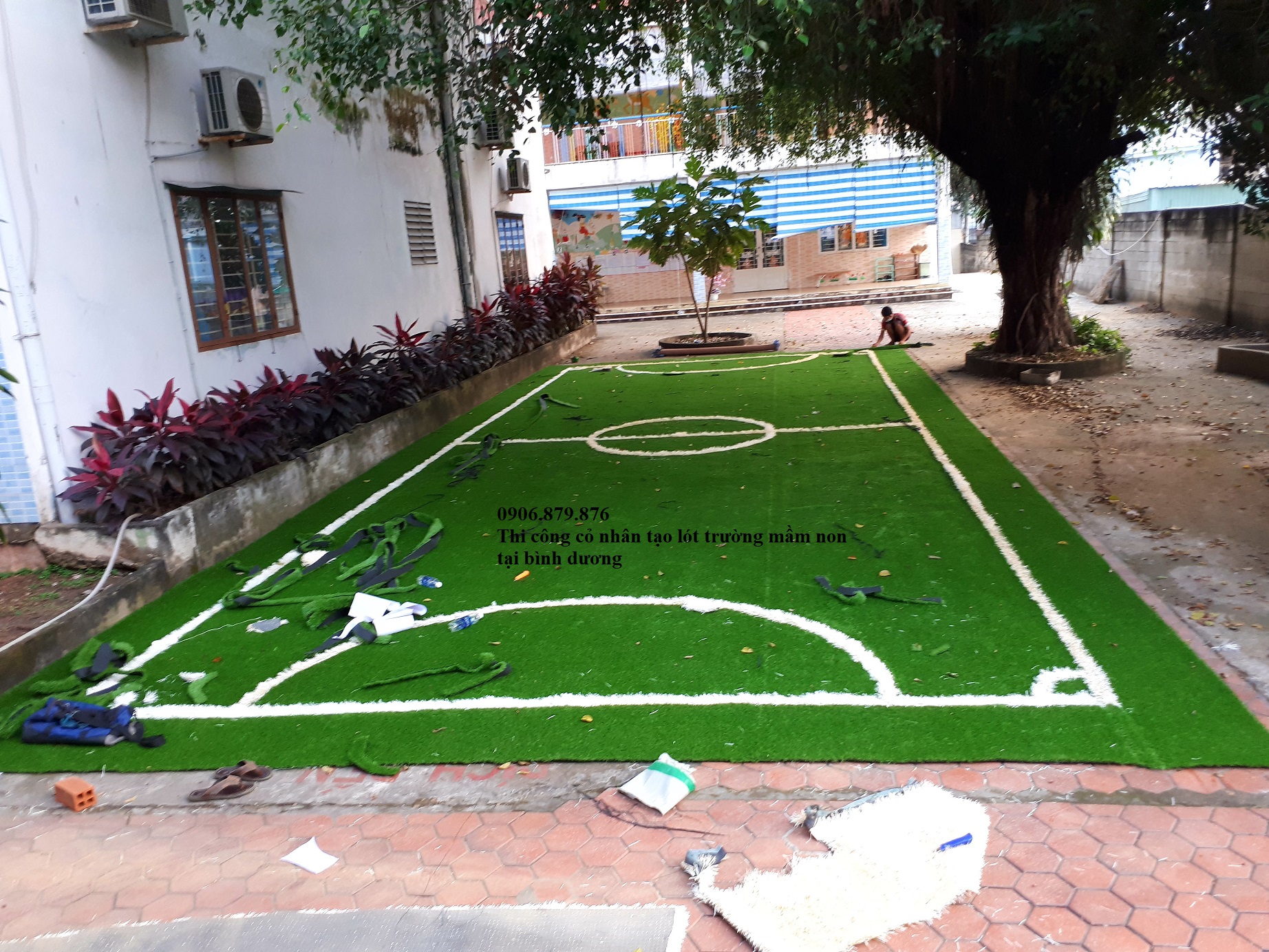Cỏ nhân tạo lót trường mẫu giáo hoa mai 1 thuận an bình dương