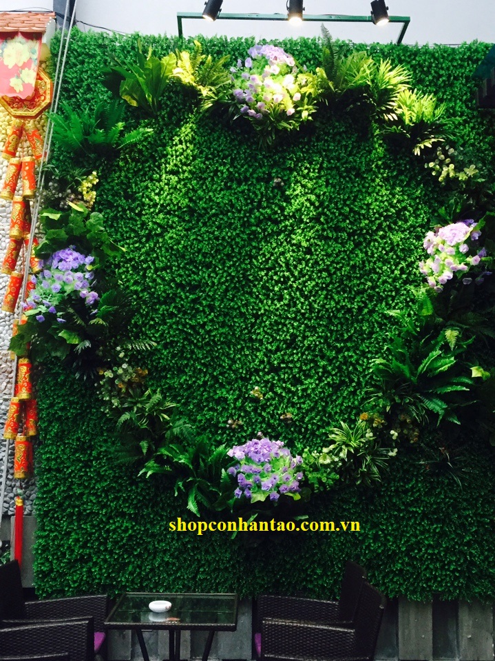 thi công tường cây giả, tường cỏ giả cho quán ăn tại tân phú
