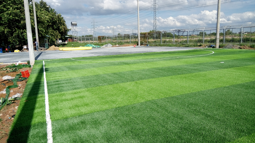 Cỏ nhân tạo đã xanh và chuẩn bị mặt bằng cho sân thứ 2