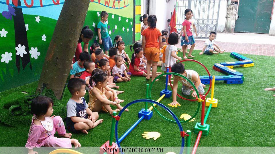 Dễ dàng lắp đặt: Cỏ nhân tạo được lắp đặt 1 cách dễ dàng trên nhiều loại nền khác nhau, như nhựa đường, ximăng hoặc cát.